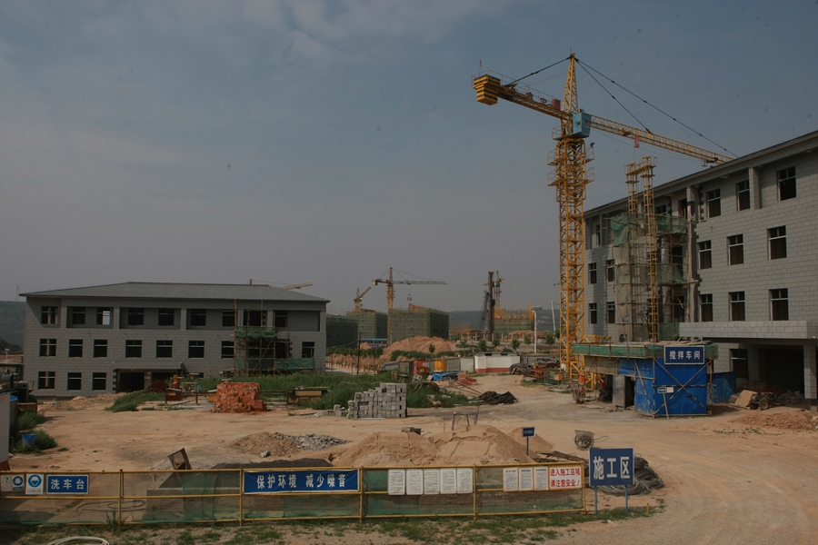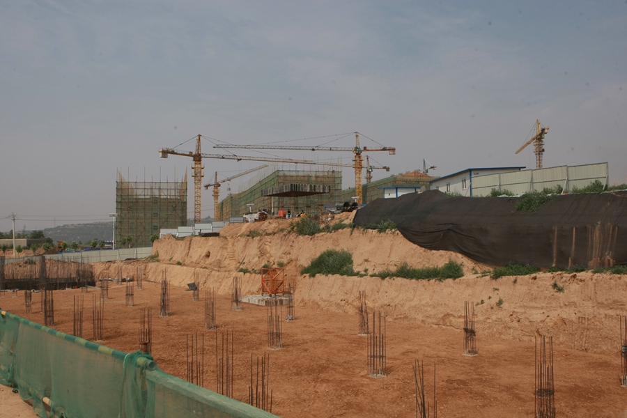 近日,记者来到王益区黄堡镇重点示范镇建设项目现场,施工场地一派热火朝天的场面,示范镇建设正在如火如荼的进行中。远远望去,塔吊高耸林立、焊花四处飞溅,令人目不暇接;一台台运输车、挖掘机、推土机等机器轰鸣声声入耳。